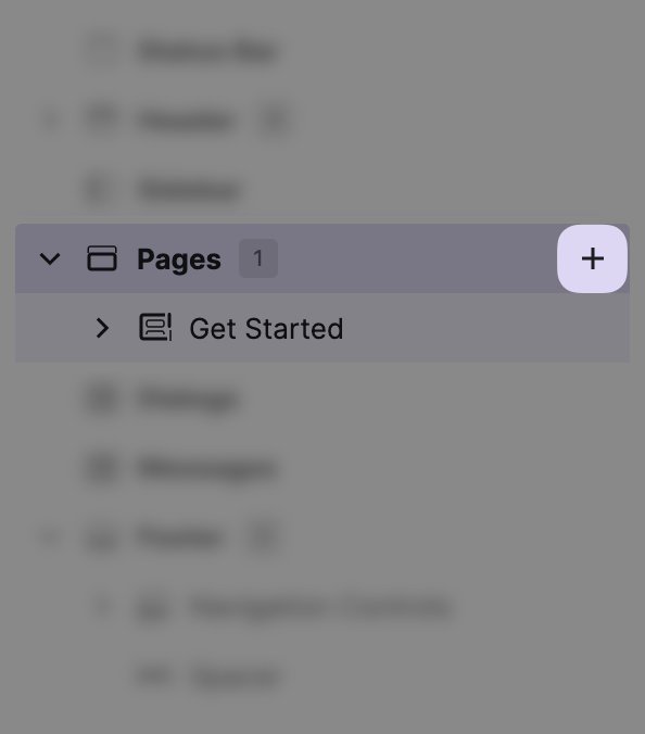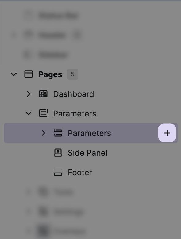 Within the HMI Content Tree, locate the Parameters child node of your page and click the + button.