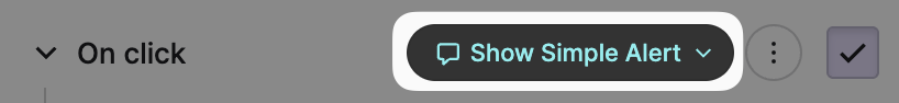 Navigate to the On click property of our button within it's Properties Panel and click the drop down next to it. This will open the Select Action dialog.