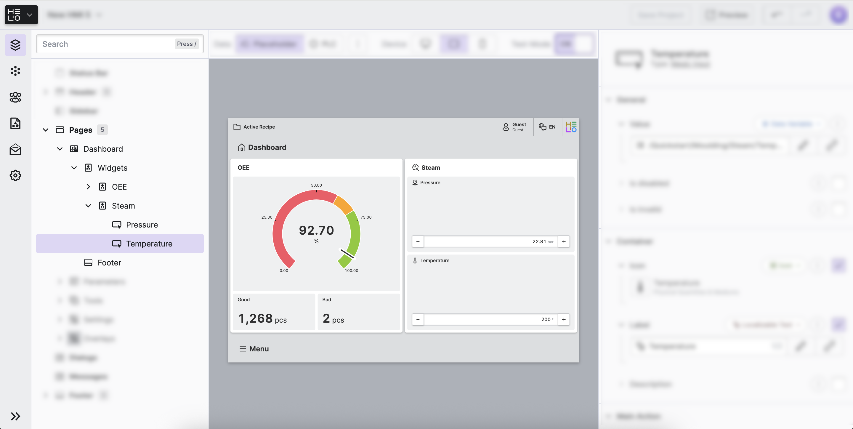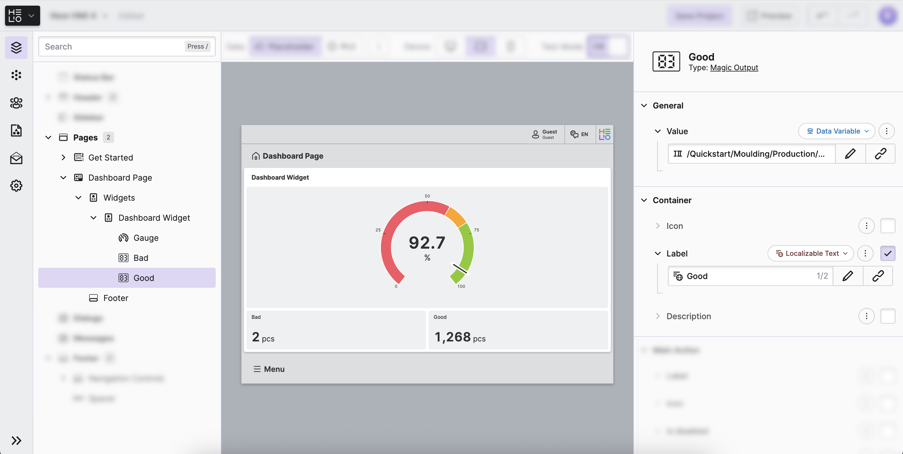 Select the first widget and rename it to OEE in the HMI Content Tree, as we would like it to display the quality of our production.