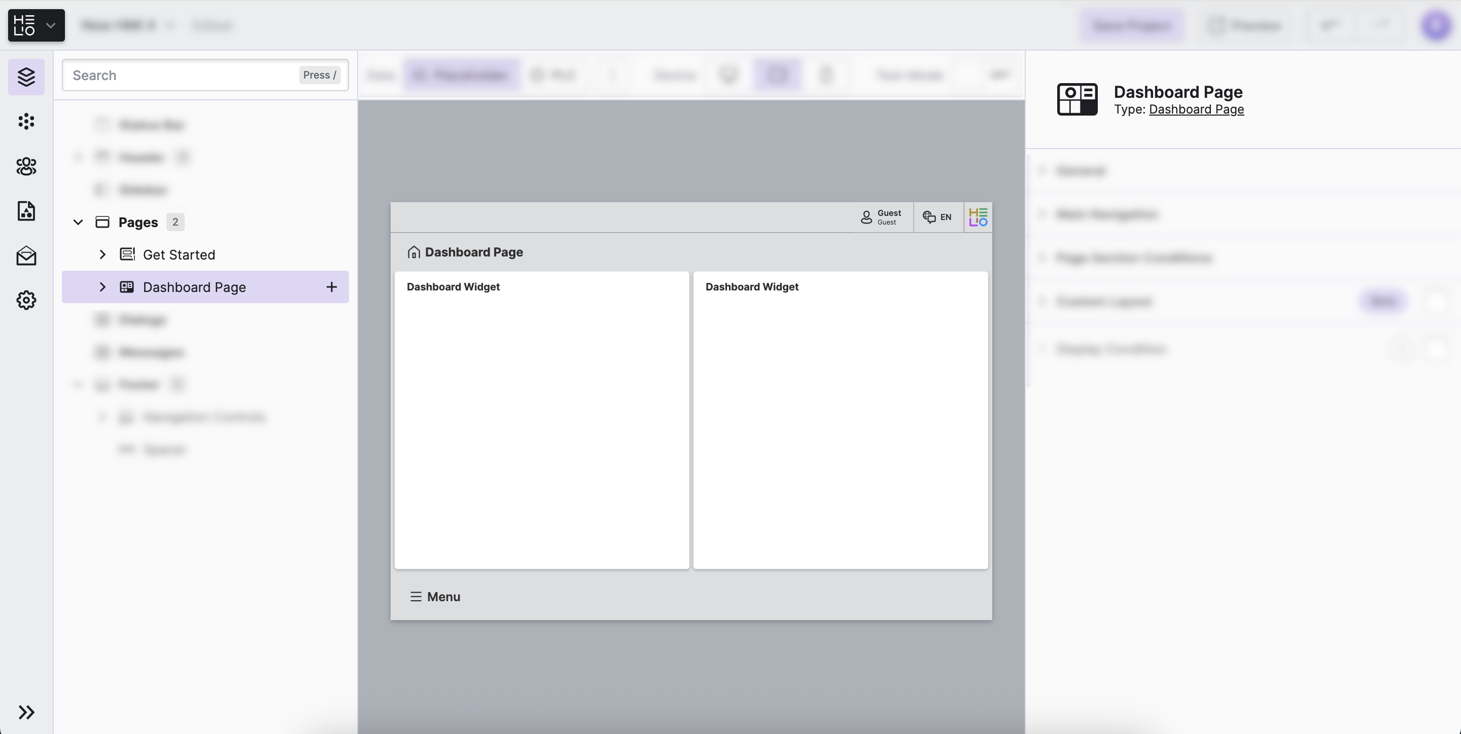 Let's dive in and create a first page! In HELIO, every page is special and serves a unique purpose. To kick things off, we'll make a Dashboard Page, which is a helpful page type often used as a home page to your HMI.