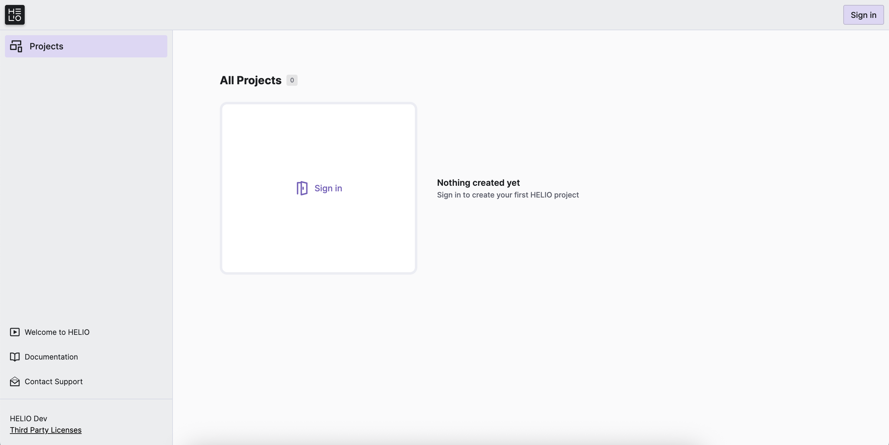 Click the Sign In button in the upper right corner. Enter the default IDE user credentials that come pre-configured with each HELIO runtime: