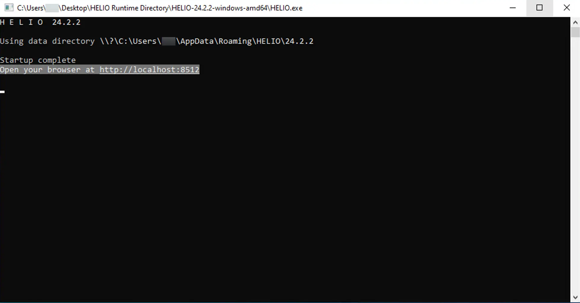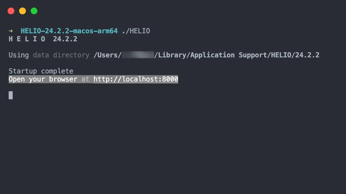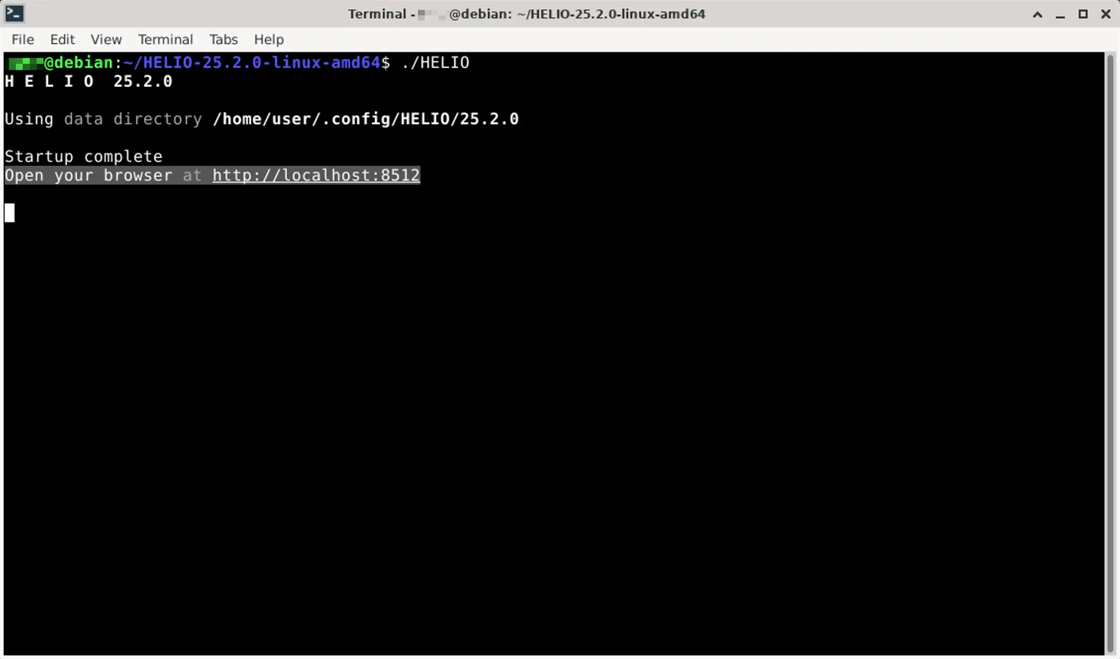 HELIO will be executed inside a new Terminal Window that should look like this:
