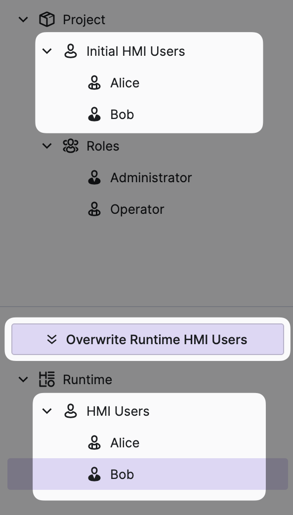 Fortunately, this isn't a significant issue. Simply click Overwrite Runtime HMI Users and confirm the resulting dialog to reset the