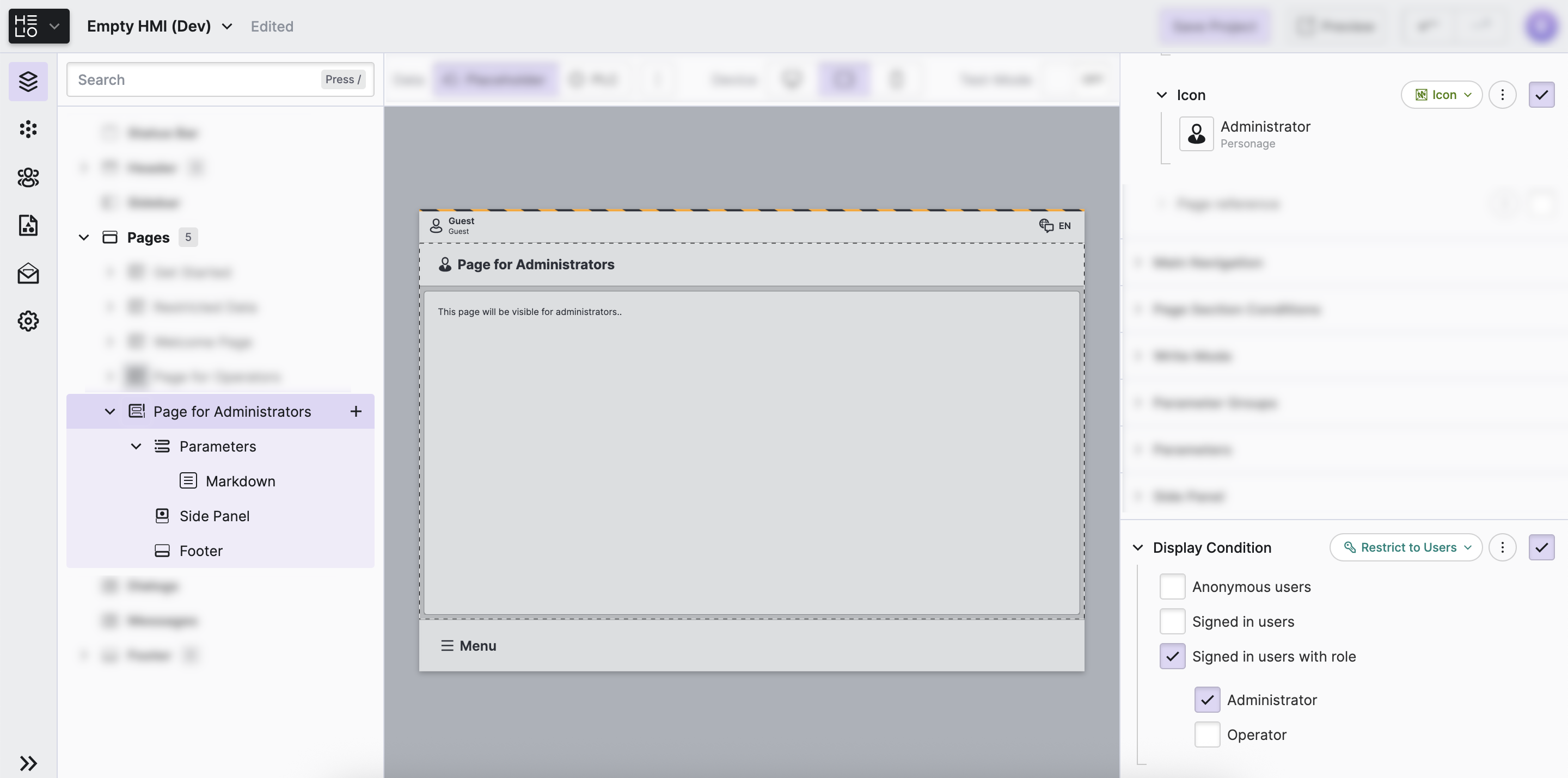 You've learned how to Restrict Access to Data. However, controlling access is not only about data, but also about pages and sections of your HMI. Now, let's explore how we can use roles to show or hide entire pages in your HMI.