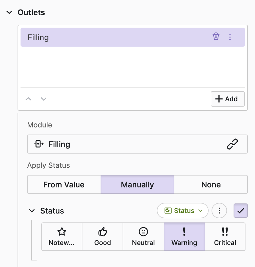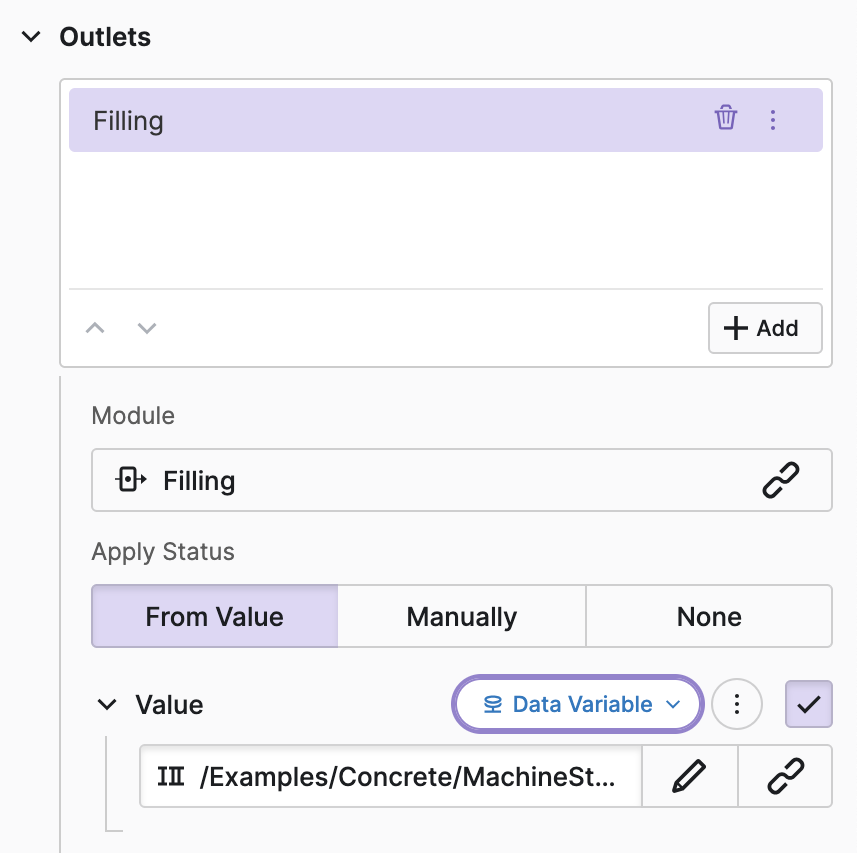Another common task within workflows is indicating that a step or outlet is running or active. In this example, production is still running, and there are cartons left. Therefore, let's set the outlet to active.