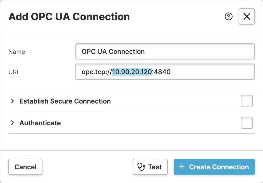The OPC-UA Connection lets you connect HELIO to PLCs that comply with the