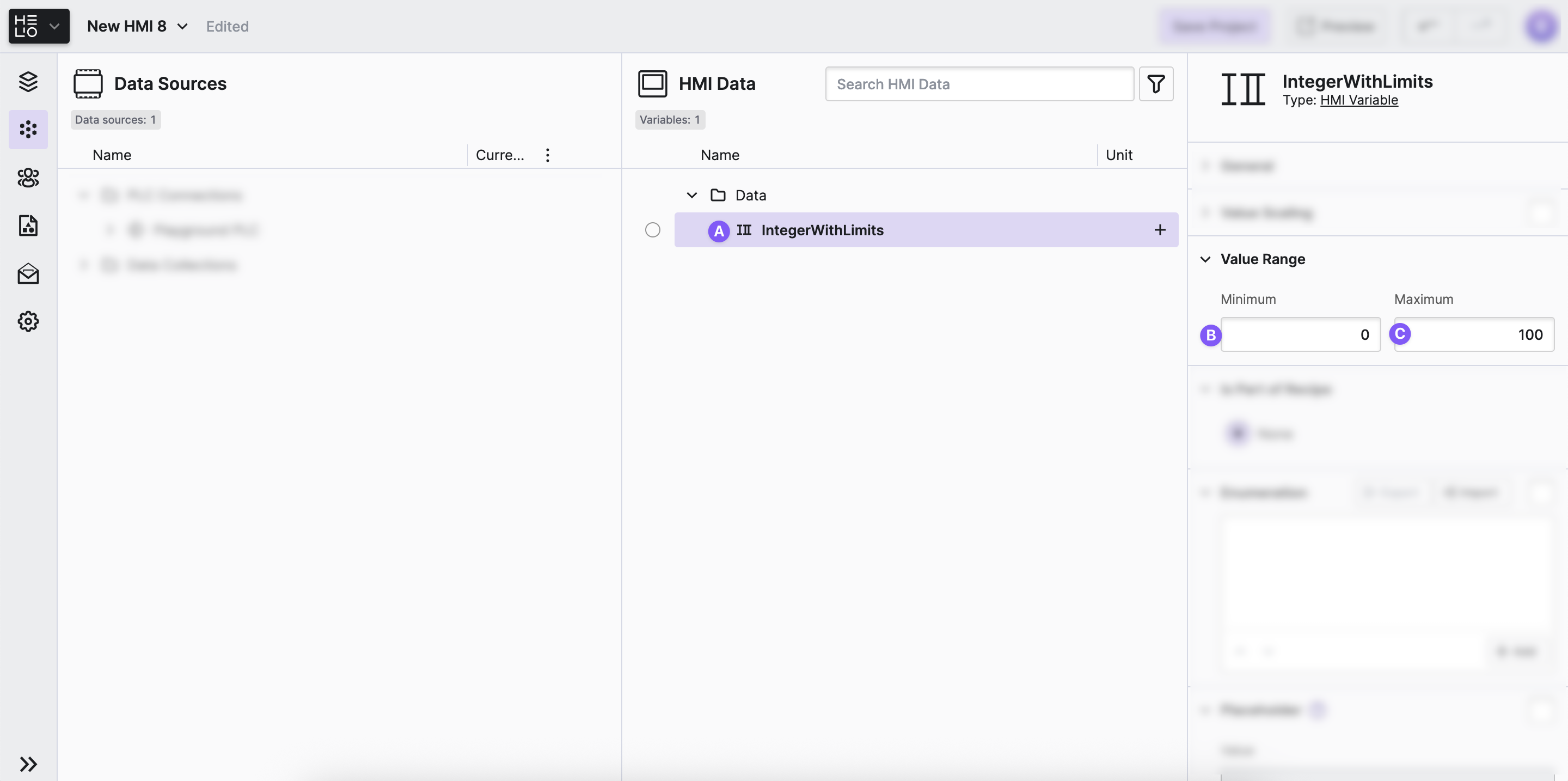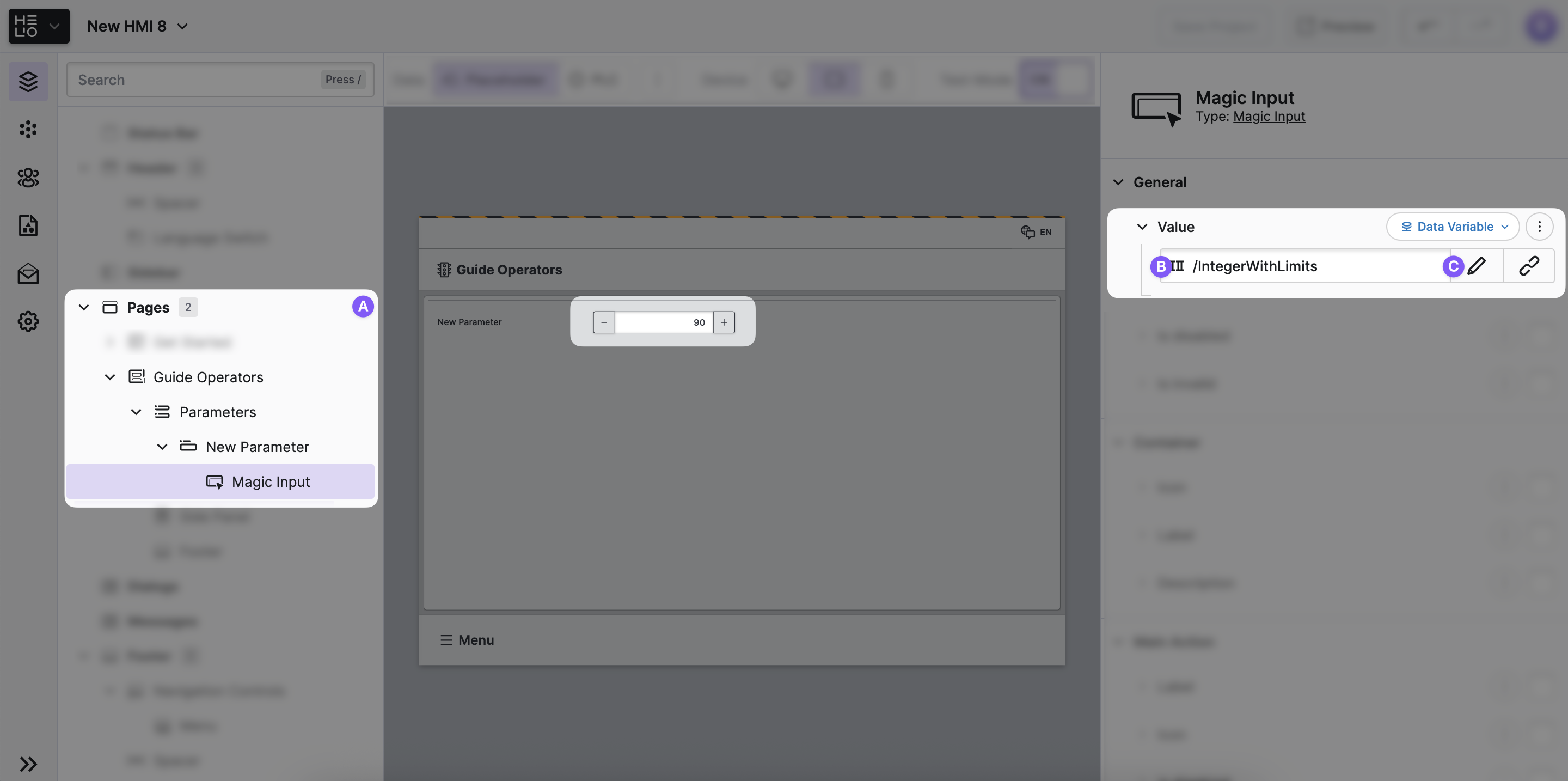 Numerical Input is crucial for each machine. Operators need to be able to use steppers but also the keyboard to input numerical data manually. In both cases defining limits allows HELIO to provide guardrails for operators.