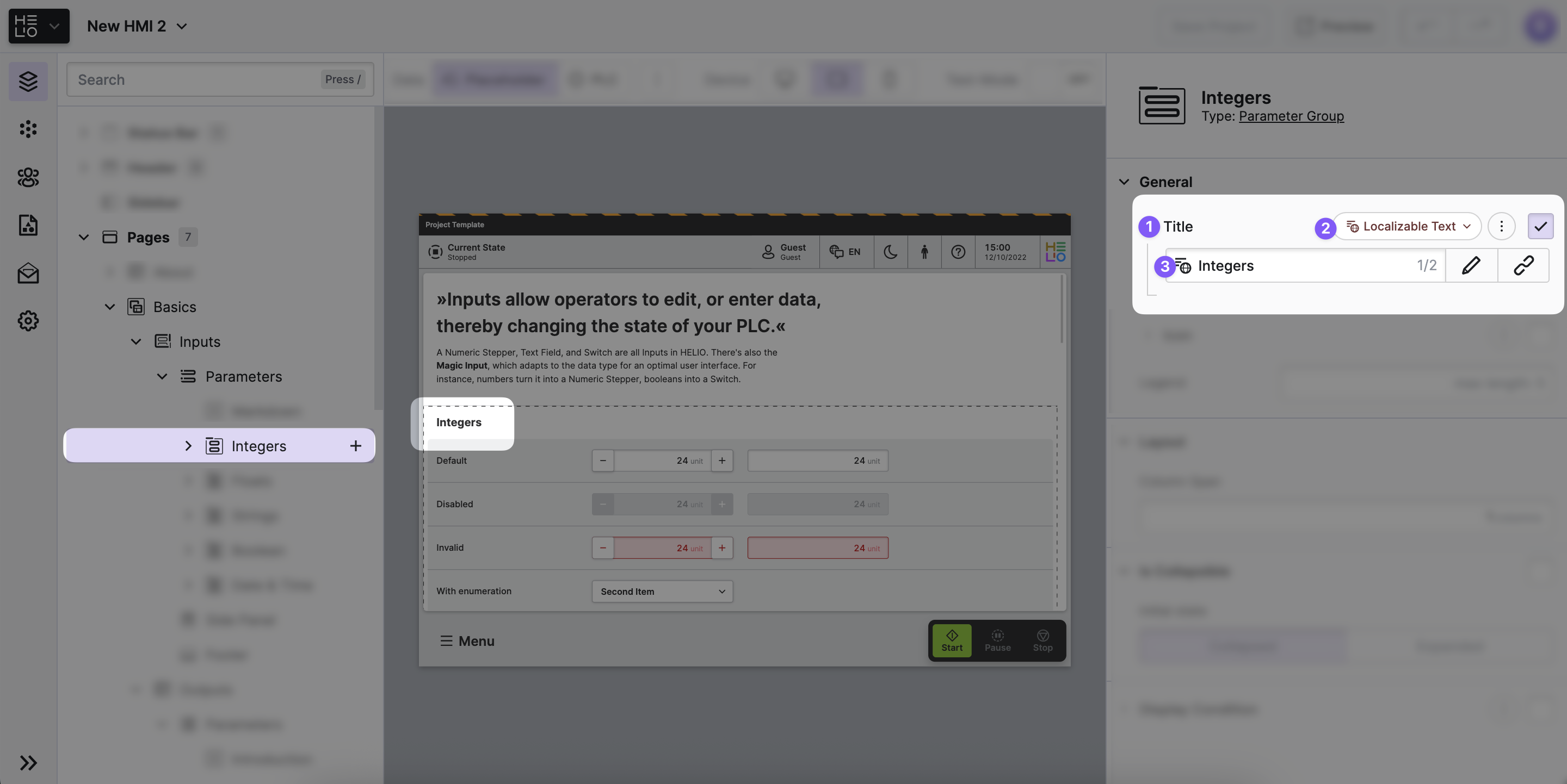 A significant aspect of internationalization is that messages or texts within the HMI are automatically translated into the language selected by the current user.