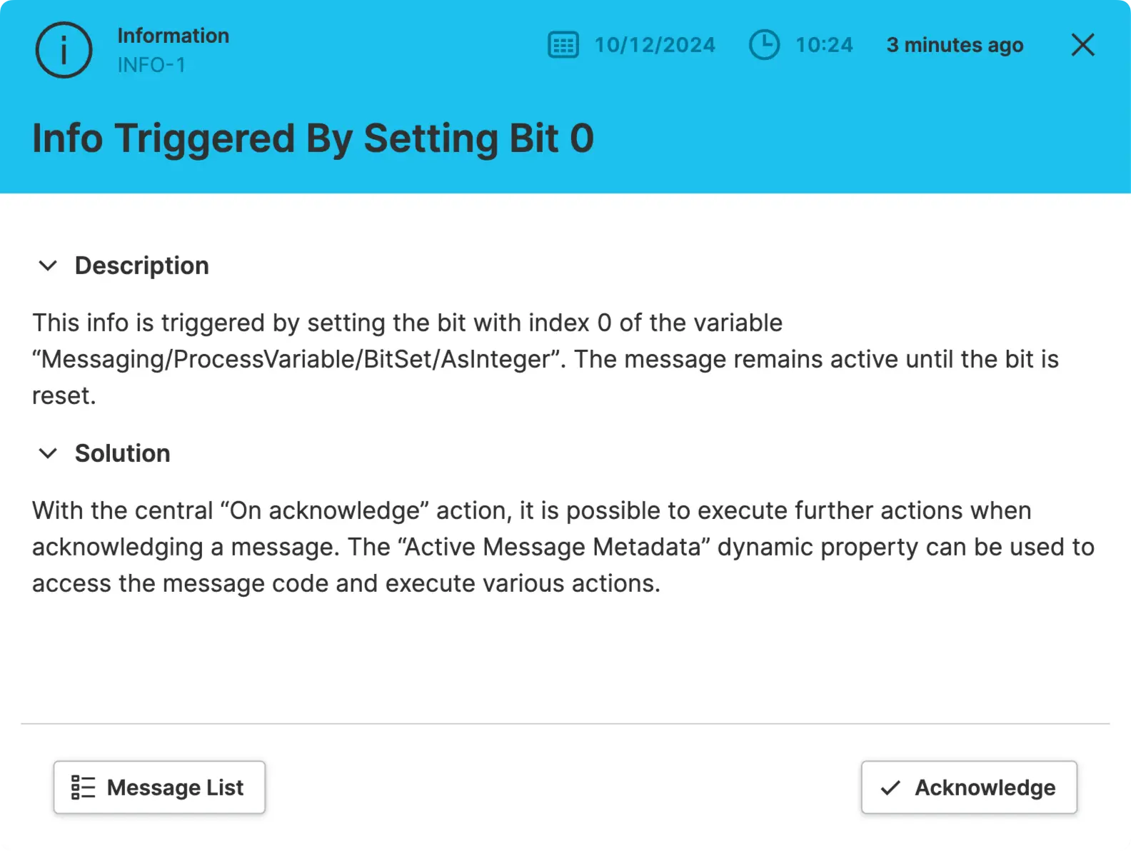 The next thing to consider when sending messages to your operators is the importance or severity of a message. You can use three message levels to help operators distinguish between highly critical and less important messages.