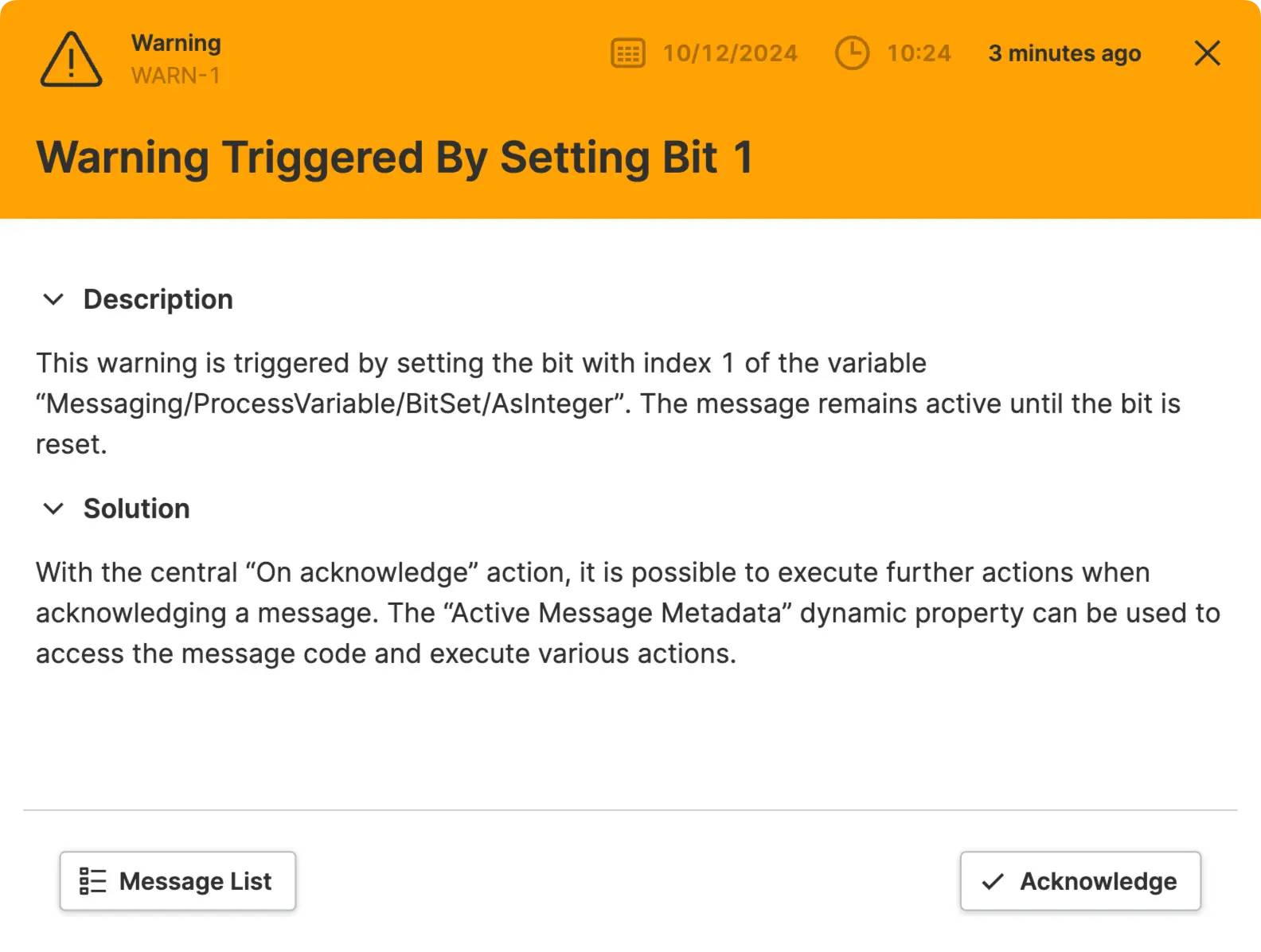 Let's have a look at a concrete example: this Warning message uses the