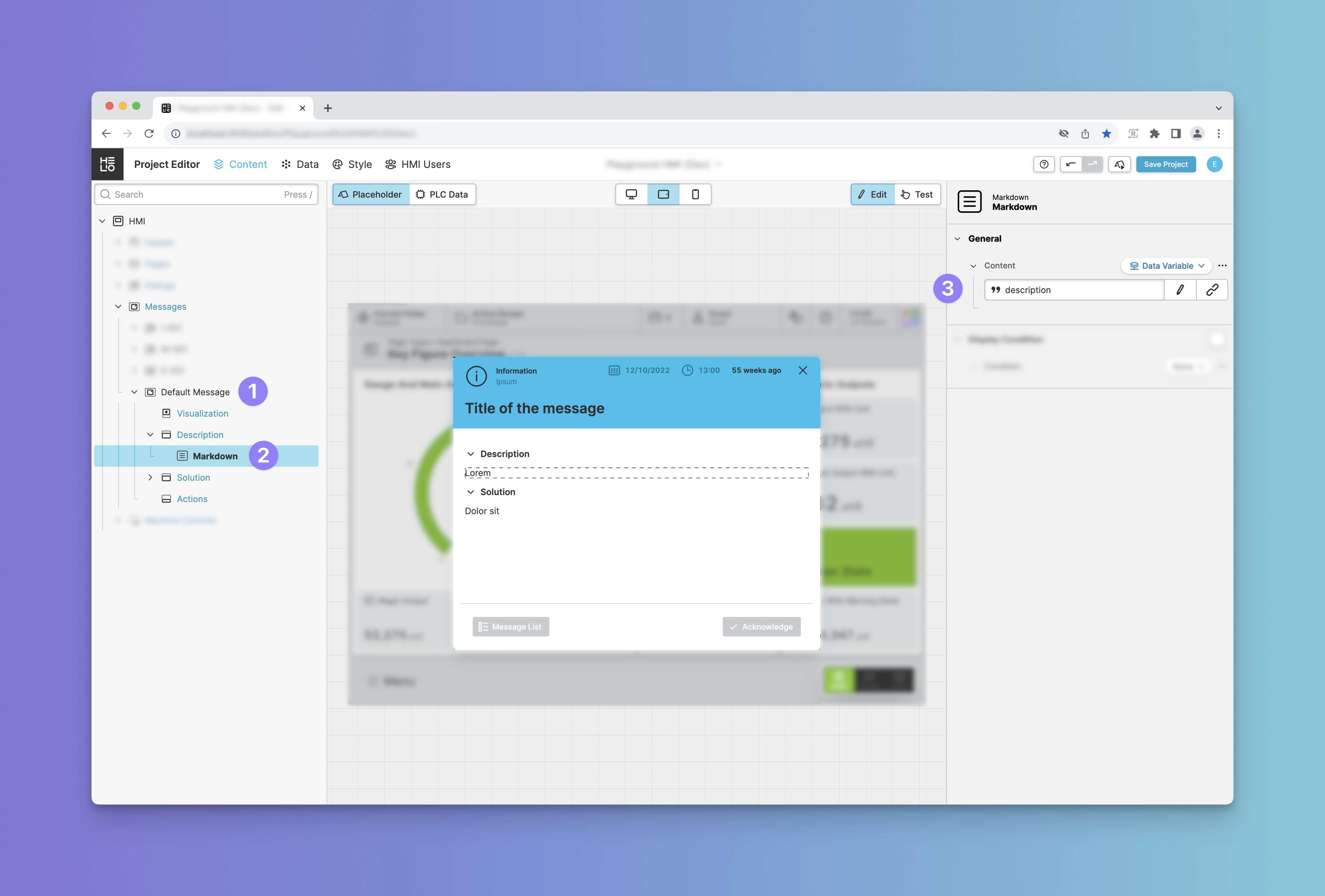 Step 2: Import MessageList and AcknowledgeMessage in your HMI