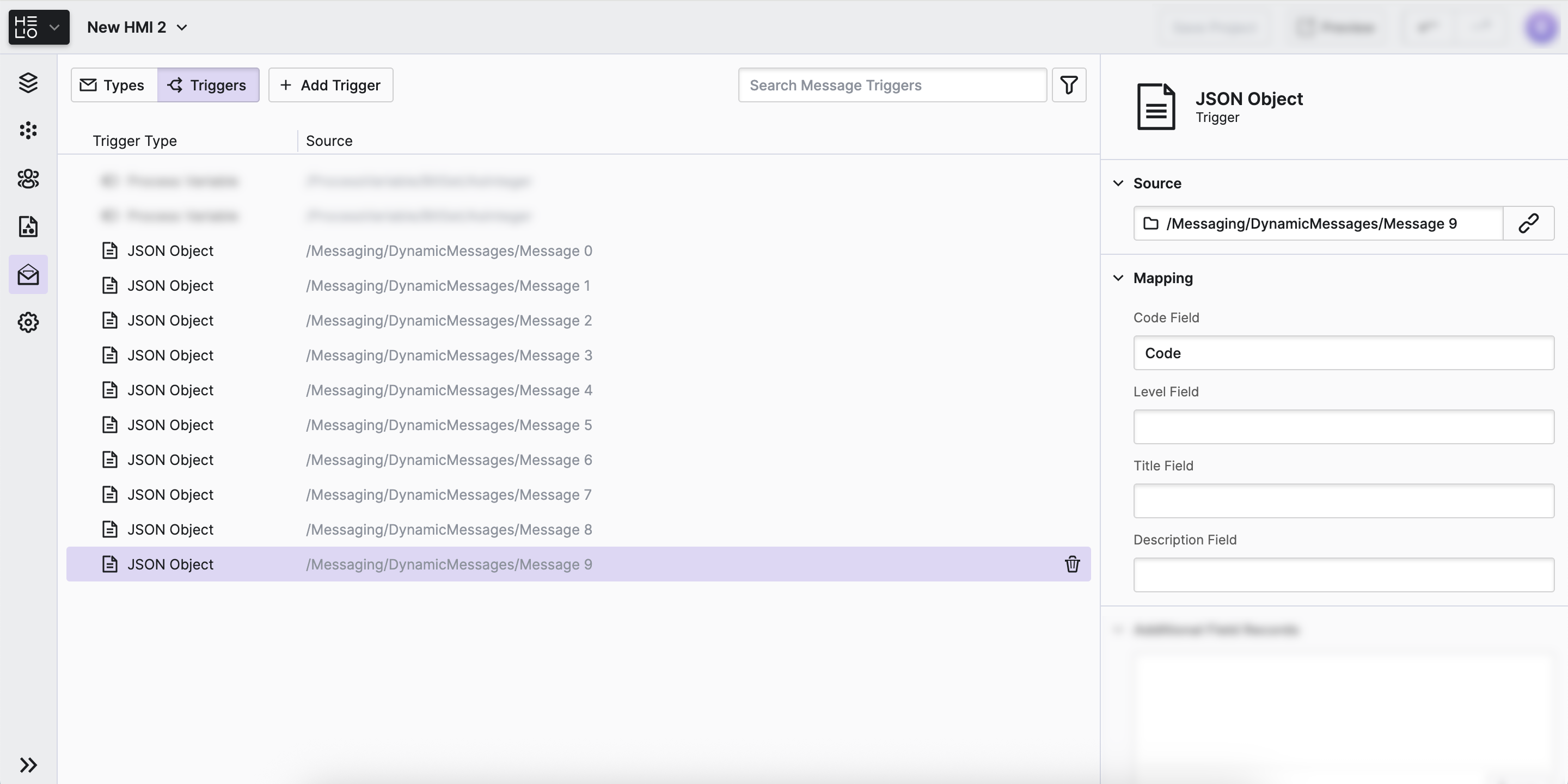 In previous HELIO versions (25.1 and below), structured objects could be represented as a data directory with message properties as child variables. This is still supported in HELIO 25.2.0 and later versions to support older project configurations without breaking existing projects. For newer projects, use the new Dynamic Message Triggers introduced in HELIO 25.2.0. They allow you to select a variable for each message property instead of specifying a property name, which is a bit more secure since HELIO can verify if this variable still exists.