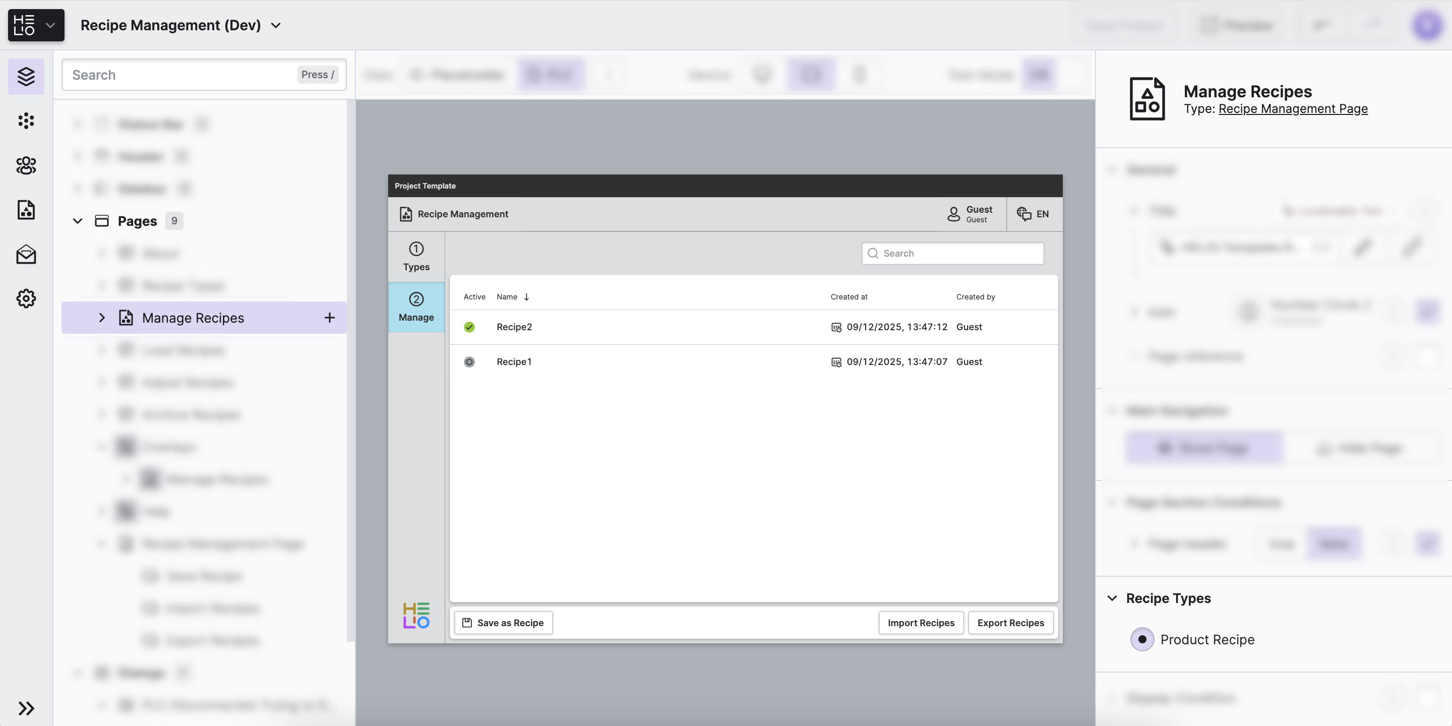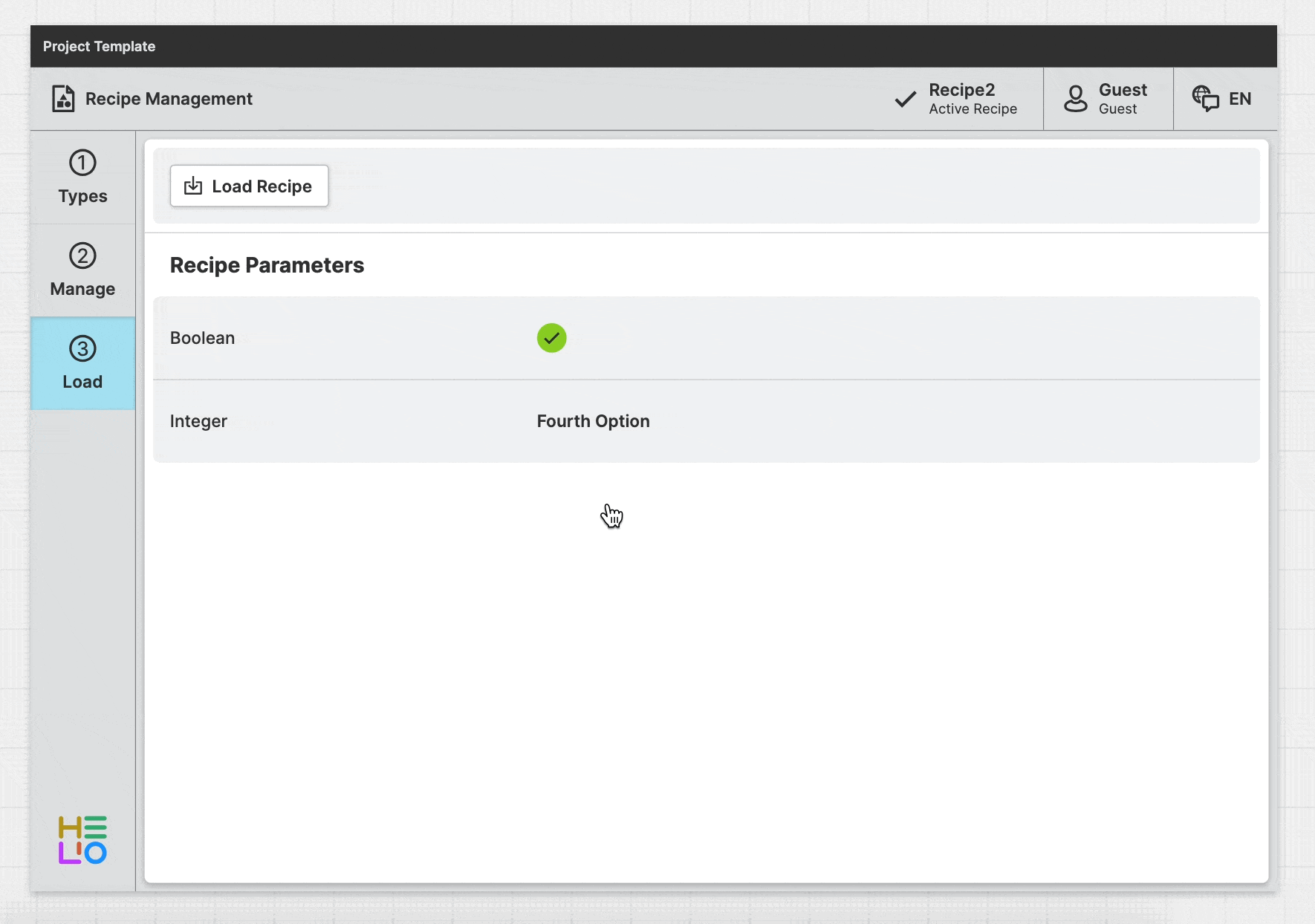 Now that we have saved some recipes, we need to list and load them. Thankfully HELIO comes equipped with the Recipe Management Page.