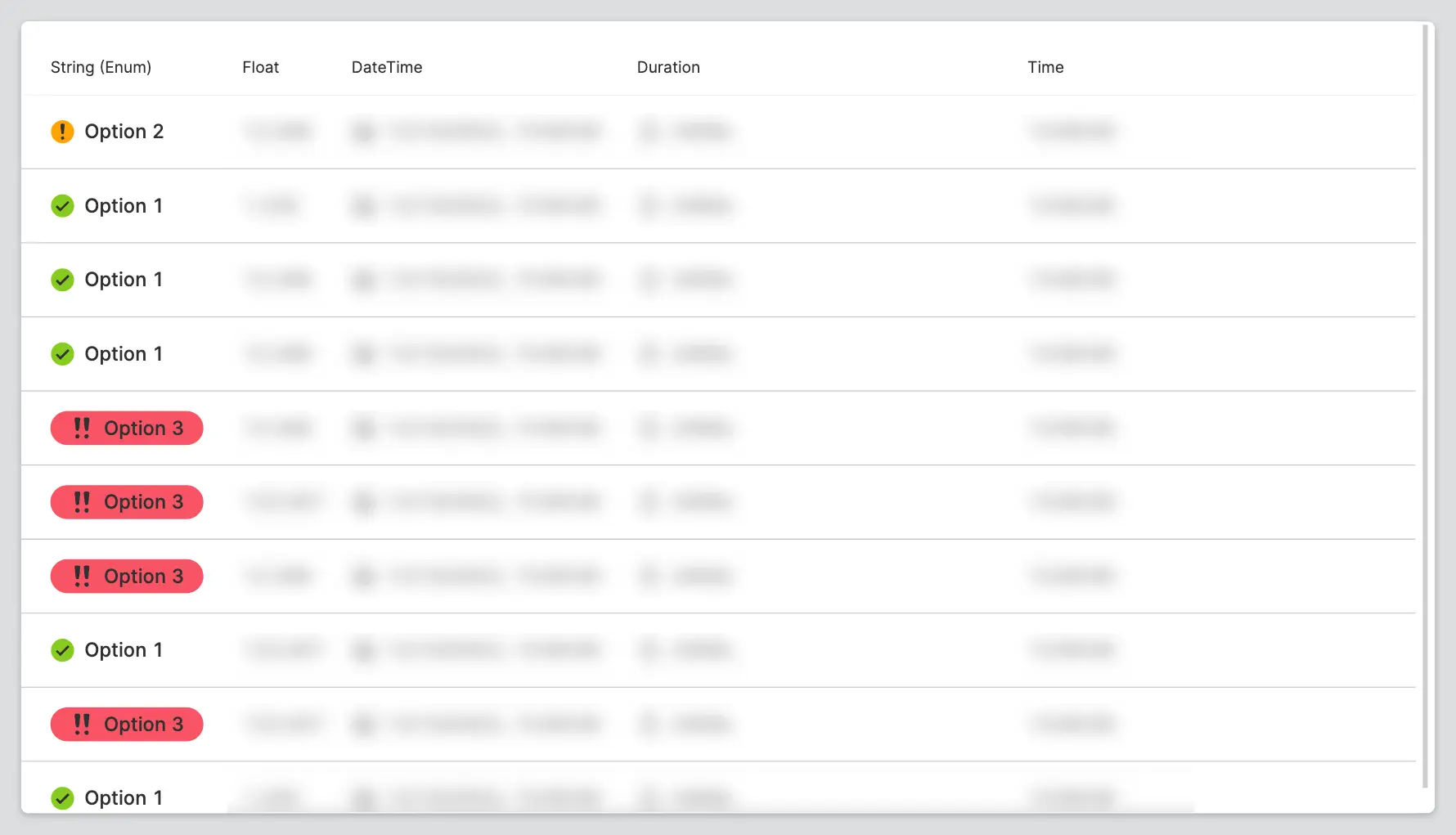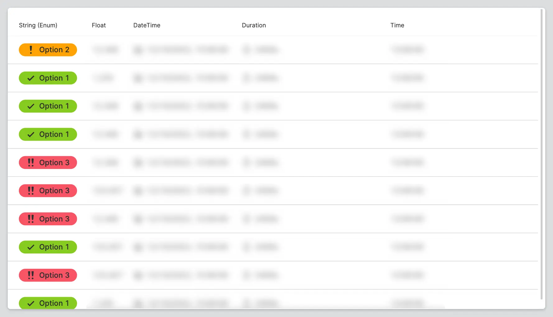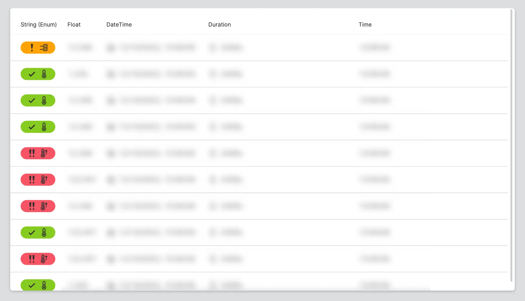Use status, icons, and highlighting to better communicate the status and quality of an item. Use this to flag outliers and critical items right away—whether it's a machine running hot, a batch that needs attention, or equipment that needs maintenance.