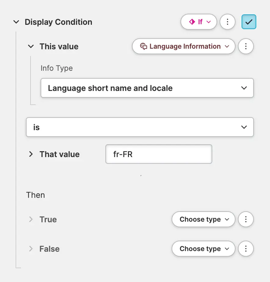 The condition is applied to the Display Condition which means that we should make sure to set it to a boolean value. In such a situation can simply apply the default values for the falsy and truthy case.