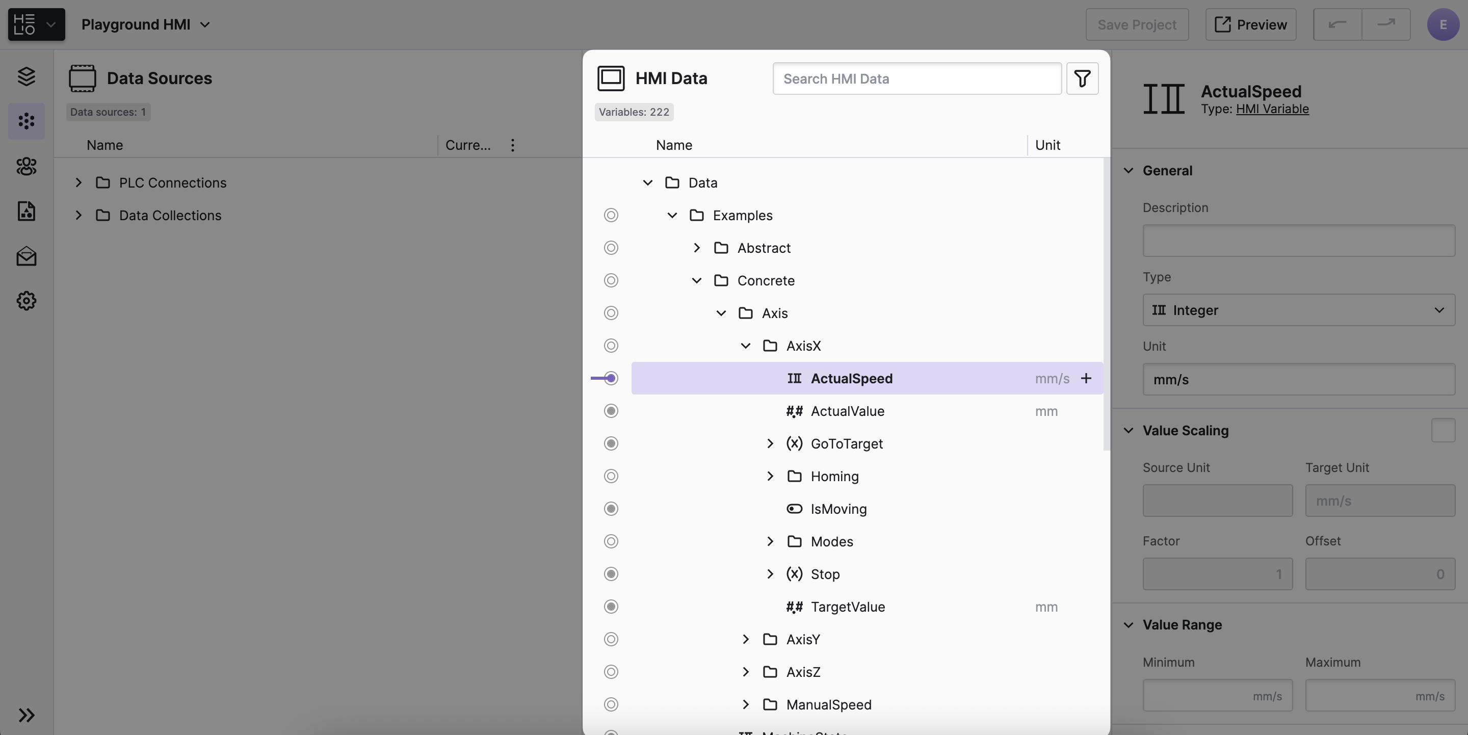 Use the HMI Data Explorer to define the data model of your project. By